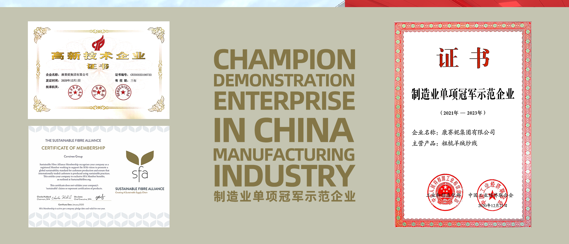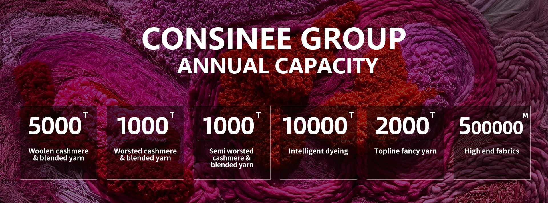 Consinee Group, the only large-scale spinning company in China that completely use the new and imported automatic production lines, is honored as the Champion Demonstration Enterprise and The Plant of the Future in the “Made in China 2025” in Zhejiang province. Today, Consinee Group produce and sell high quality yarns and fabrics 10,000 tons annually, mainly using natural fibers like cashmere, among which 100% cashmere fibre accounts for more than 3000 tons, occupying 15% to 20% share of world’s total cashmere output. Consinee is the biggest manufacturer and exporter of high-end cashmere yarn in China.